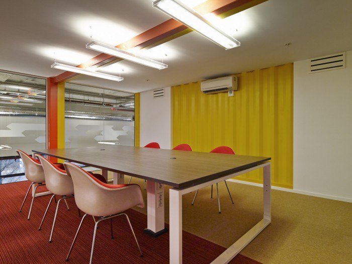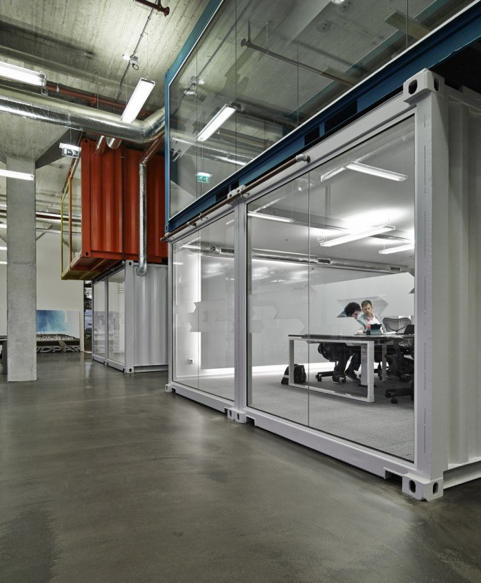 Beton, fém és színek. Nagyjából ezeket lehet kombinálni egy régi raktárban, ha az ódon épületet gatyába akarjuk rázni, és bele kívánjuk csempészni a 21. század igényeit. Itt sem történt más, de mielőtt leszólnánk bármit is, a tér osztása, és azok újabb osztása egy olyan látszólag kaotikus teret hozott létre, ahol valójában mindennek megvan a maga helye. A kooperáció és a privátszféra jól megférnek egymással.