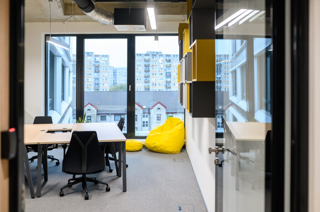 A közösségi iroda tökéletes választás egyéni és csapat alapú munkavégzésre is a Fix Desk rendszerének köszönhetően, illetve a nagyobb cégek számára olyan flexibilis irodatereket biztosít, amely megfelelő választ ad a pandémia okozta kihívásokra is. Teljesen felszerelt tárgyalók, konyhák és közösségi terek várják a bérlőket, mindemellett a rendezvényteremben nagyobb eseményeket is lehet szervezni.